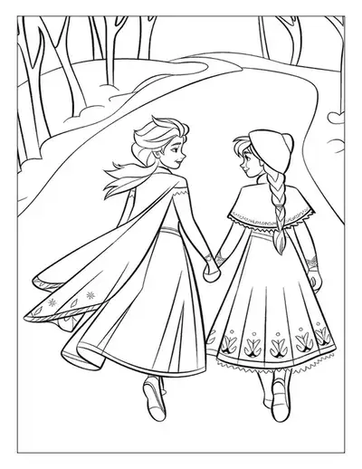 Frozen Sisters Walking Together